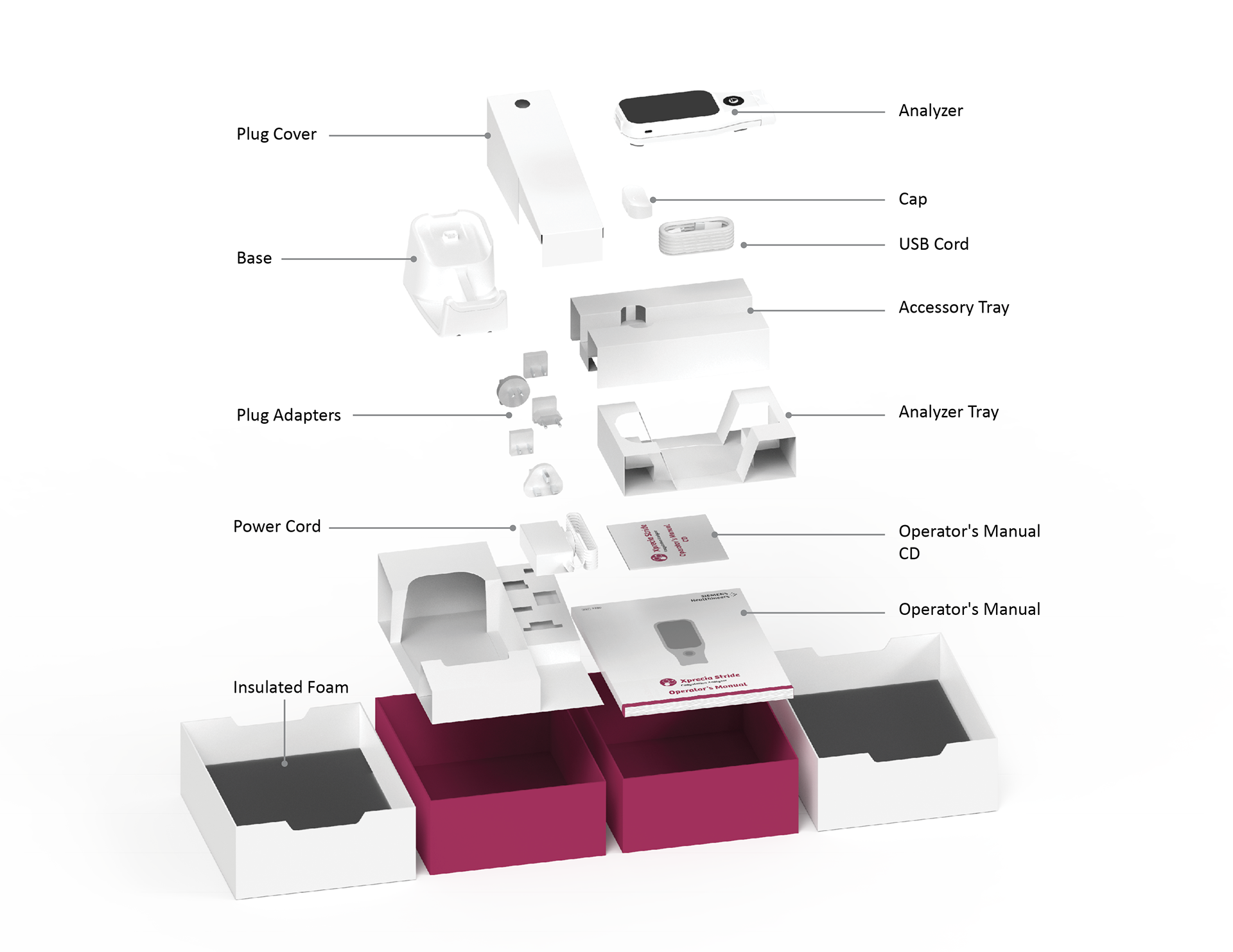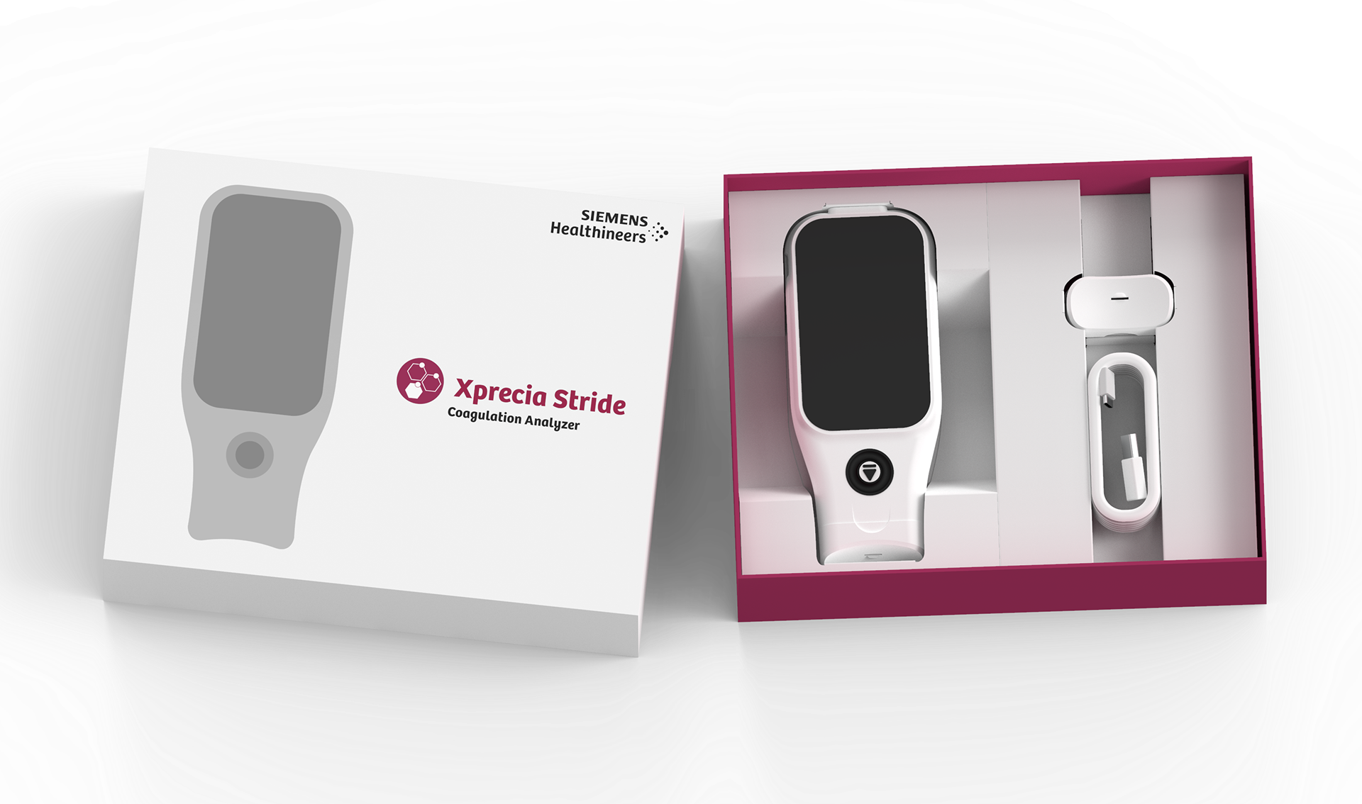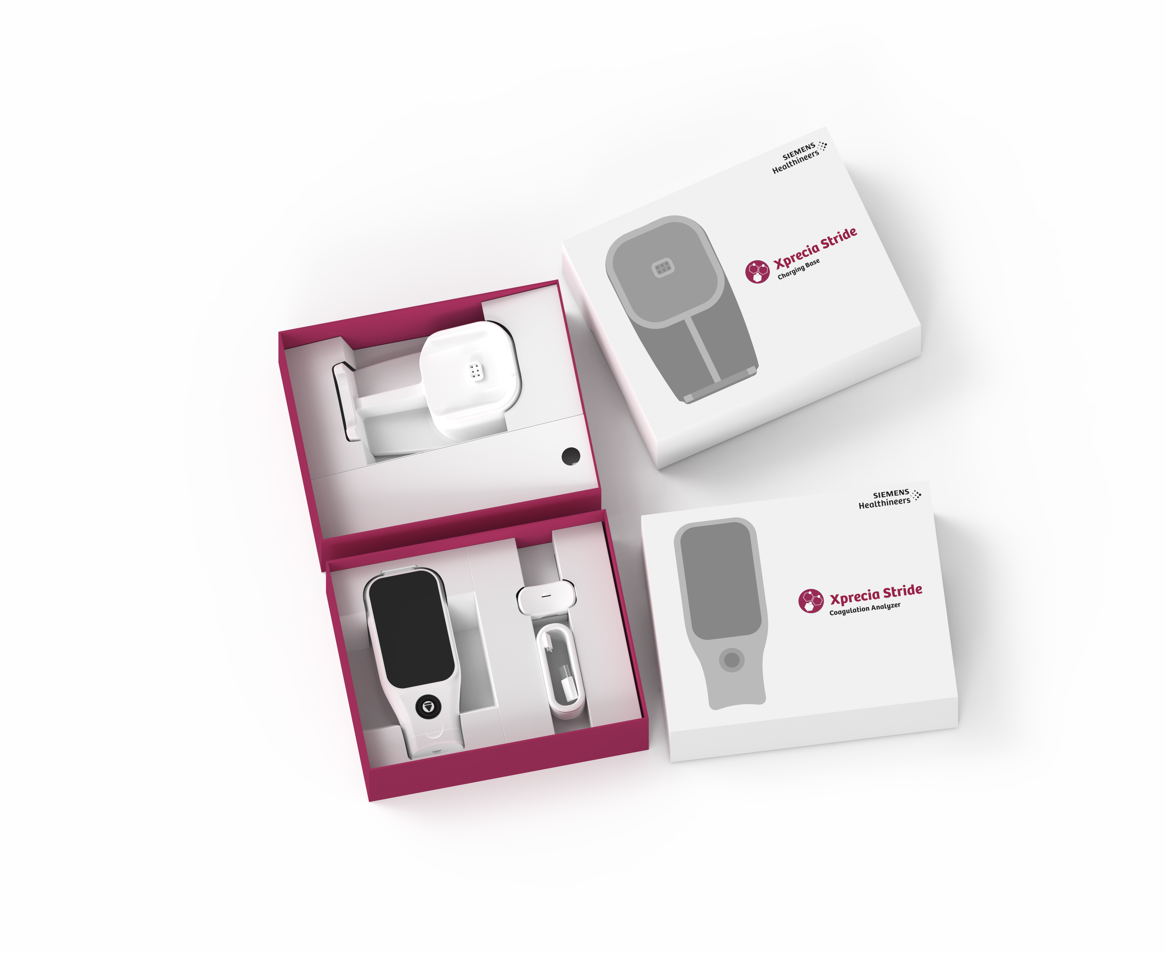 The packaging for the Xprecia Stride analyzer and base was designed to securely house and protect the product while maintaining a clear and consistent unboxing experience. The goal was to create a structured solution that aligned with existing branding language while reducing material cost and improving stability during handling and shipment.