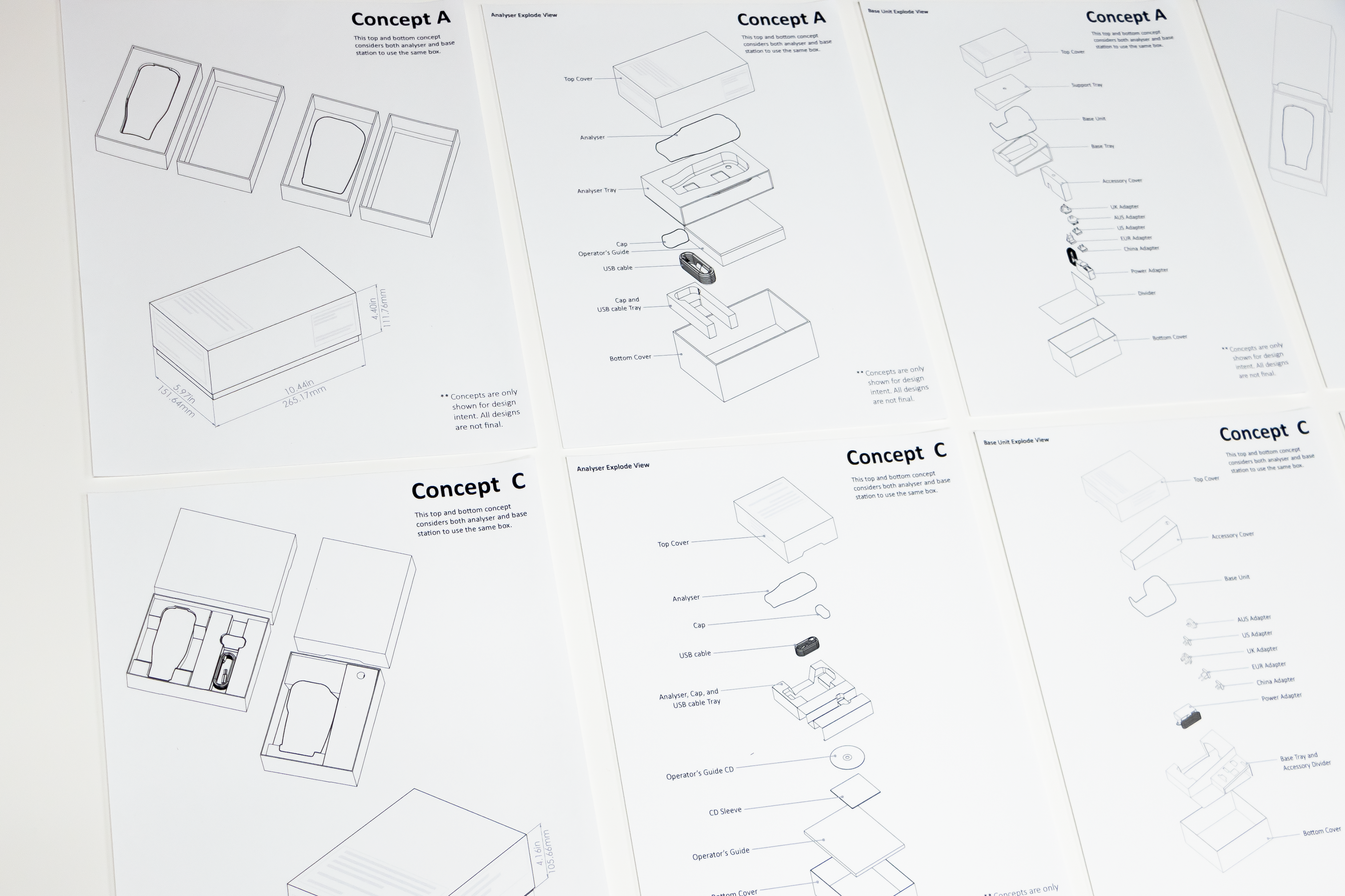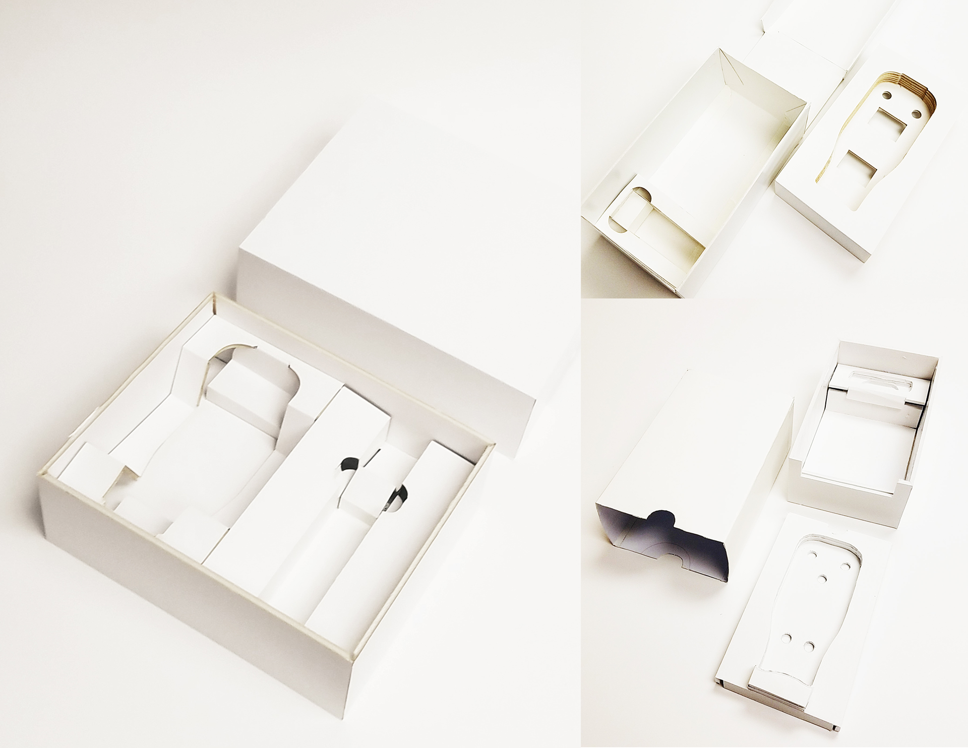 The process involved studying both internal packaging systems and external benchmarks to understand common failure points and opportunities for improvement. The final direction used a die-cut structure that folds into a formed interior, creating a snug seat that limits movement and prevents rolling without relying on excess material.